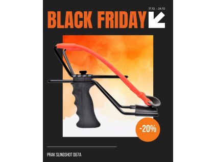 SLINGSHOT DG7A — odolný prak s polymerovou rukojetí, kovovými držáky a nastavitelnou opěrkou paže. Vhodný pro střelivo 9,5 mm, váha 390 g, v balení 10× ocelové kuličky 9,5 mm.