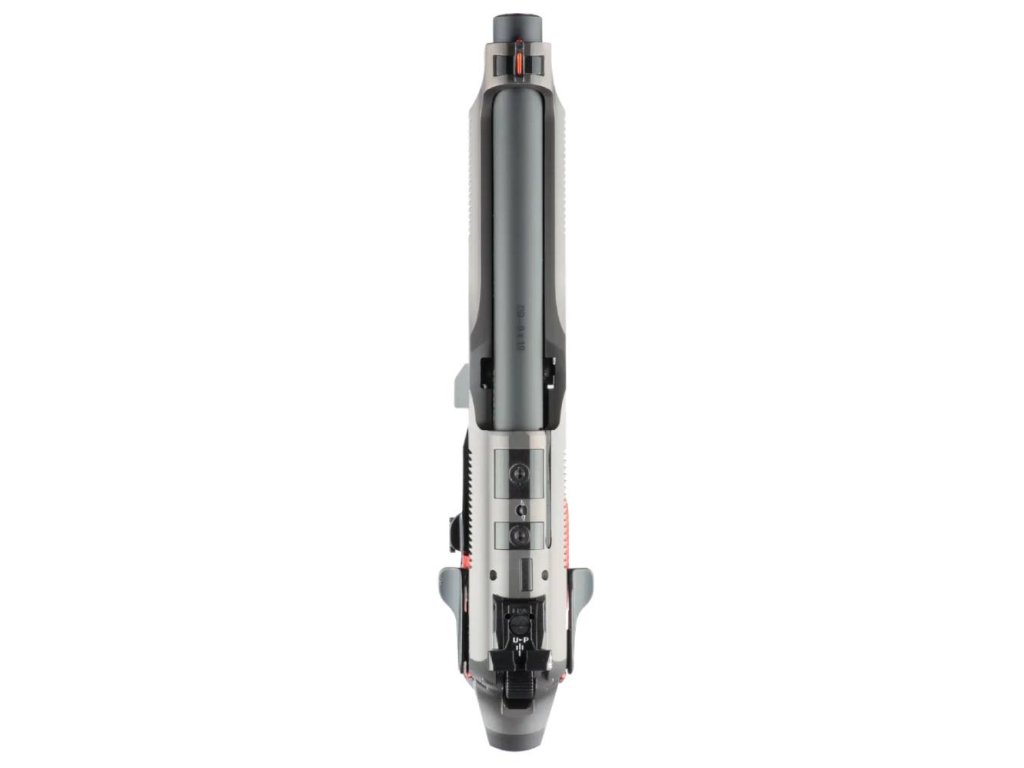 Grafitove šedá povrchová úprava s nízkým leskem a odolností proti korozi je doplnena barvami hliníkových rukojetí a spouští. Predimenzovaný a orientovaný záchit zásobníku je spojen s agresivní texturou na hliníkových rukojetích pro bezprecedentní ovládání, zatímco úderník a prepracované kladívko Match jsou potaženy vrstvou DLC pro výrazné snížení trení a hladké fungování.