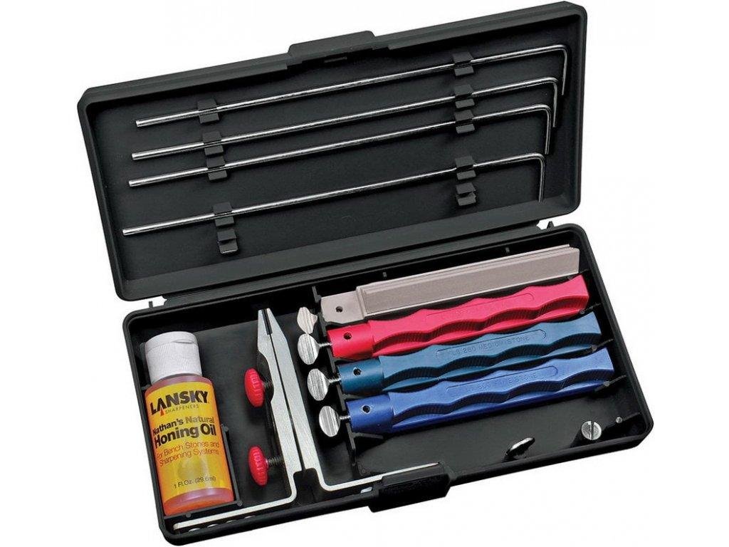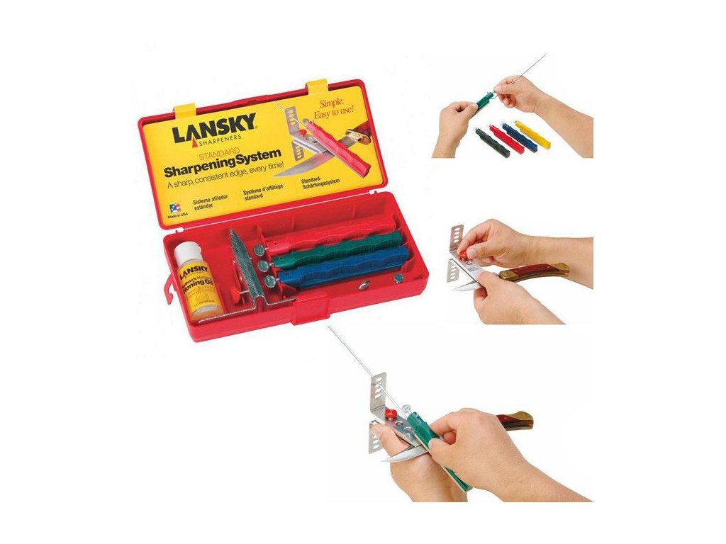 Sada brousků Lansky Universal 4 Stone System obsahuje 4 brusné kameny. Sada obsahuje brusný kámen ve tvaru trojúhelníku, který je určen k broušení zubatého ostří. Každý brusný kámen má k dispozici svou vodicí tyčku.