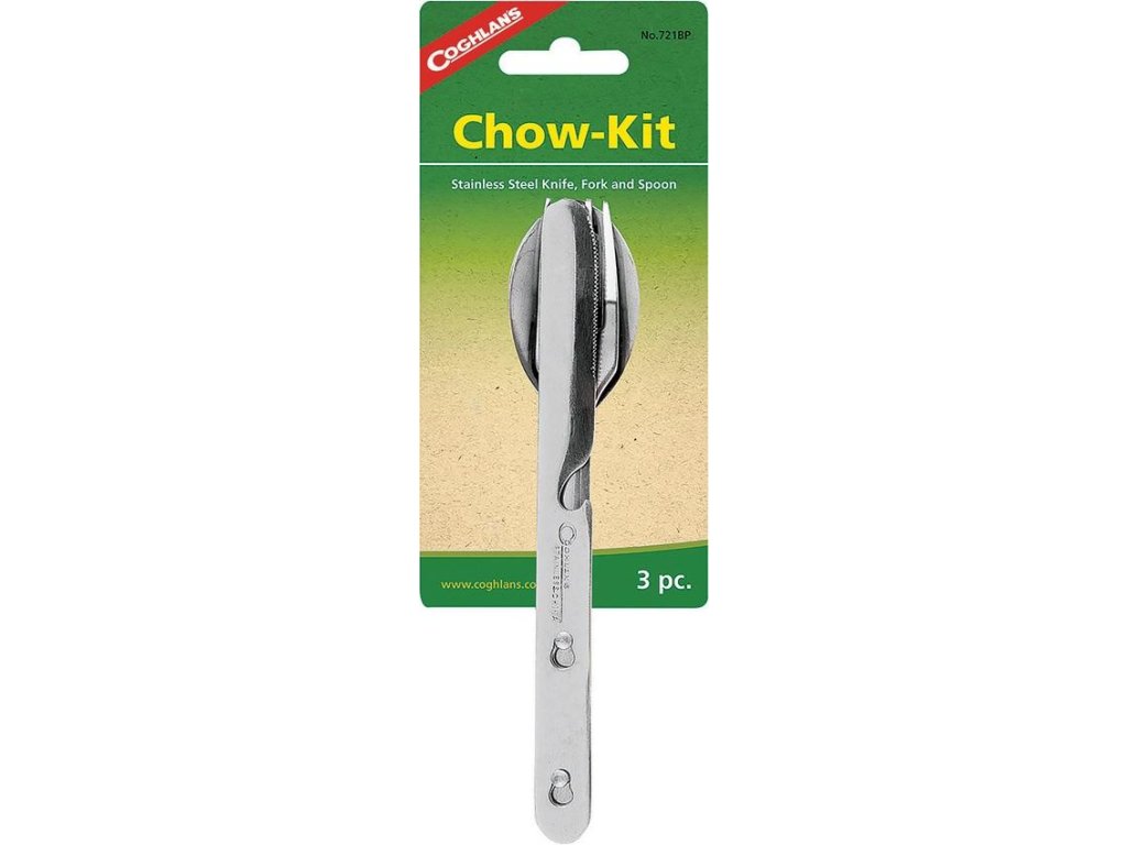 Nůž, vidlička a lžíce, které se spojují dohromady pro snadné přenášení a skladování. Nerezová konstrukce.