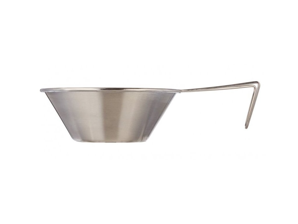 Odolná a pevná nerezová miska o objemu 400 ml, kovové držadlo nepřenášející teplo.