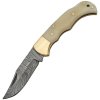 Kapesní zavírací nůž Damascus s pojistkou. Čepel z damaškové oceli. Dřevěná rukojeť.