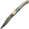 Damascus Filework Hunter. 5 " uzavíratelný s pojistkou. Čepel z damaškové oceli s klipem. Rohovinová rukojeť s mosazným zakončením.