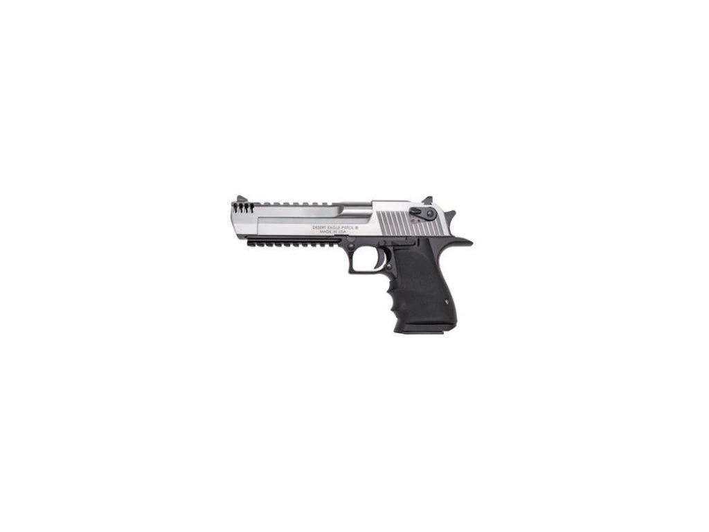 Pistole Desert Eagle XIX 6" B-STS IMB v ráži .357 Magnum s kompenzátorem zpětného rázu . Tyto poloautomatické zbraně jsou považovány za symbol mezi pistolemi.