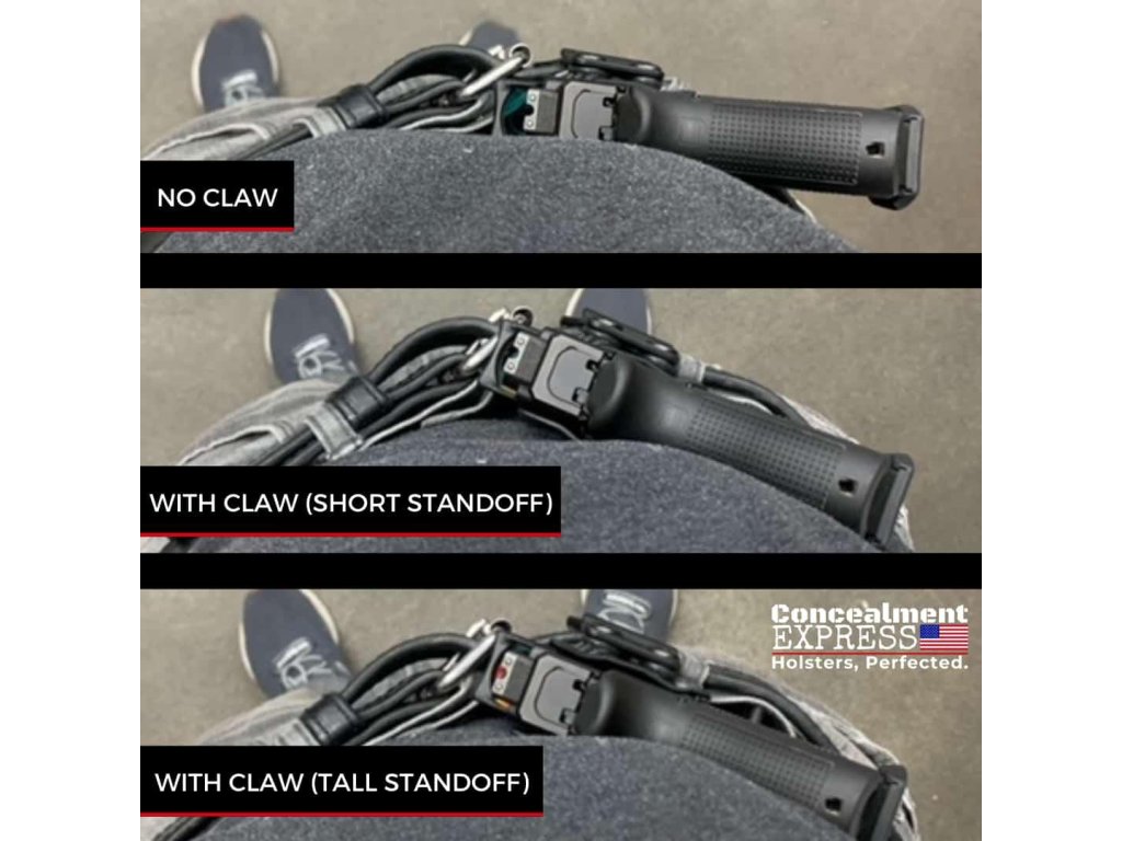 Hledáte maximální utajení? Oboustranná sada drápků je tu, aby vám pomohla. Dráp tlačí pažbu vaší zbraně směrem k tělu, čímž prakticky eliminuje jakýkoli printing a zajišťuje maximální skrytost. Kompatibilní s oběmi řadami pouzder IWB a Tuckable.