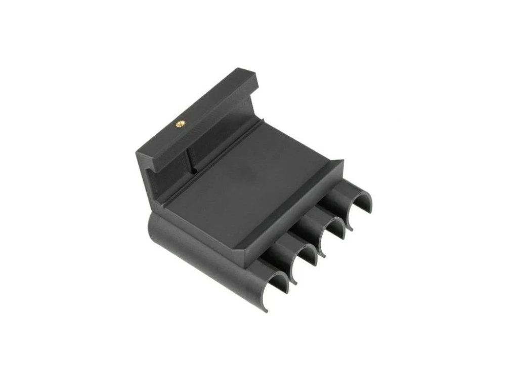 Držák je vyroben z vysoce pevného plastu, který je zároveň lehký a odolný vůči mechanickému namáhání. Černé provedení perfektně ladí s designem brokovnice a zachovává její taktický vzhled.