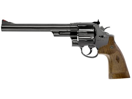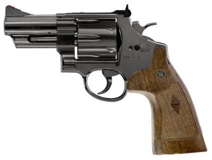 Krásný vzduchový revolver s celokovovou konstrukcí s lesklou povrchovou úpravou "modření" a s plastovou střenkou v dekoru dřeva. Velmi realistické nabíjení do komor válce.