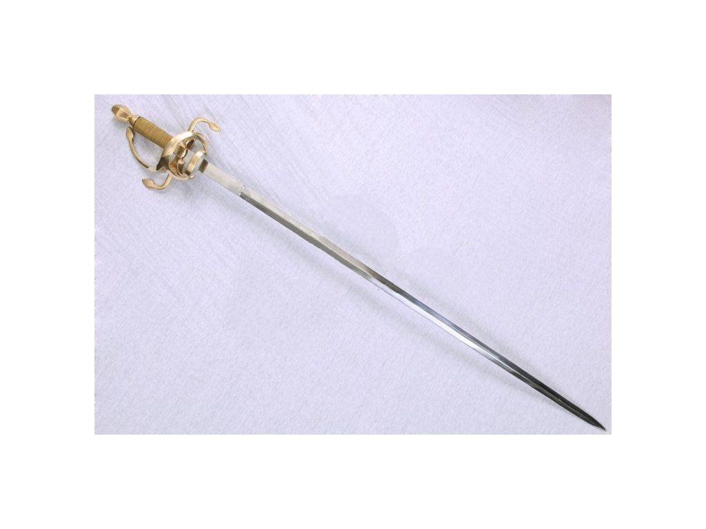 Replika historického rapíru s mosazným ochranným košem v provedení starožitná patina