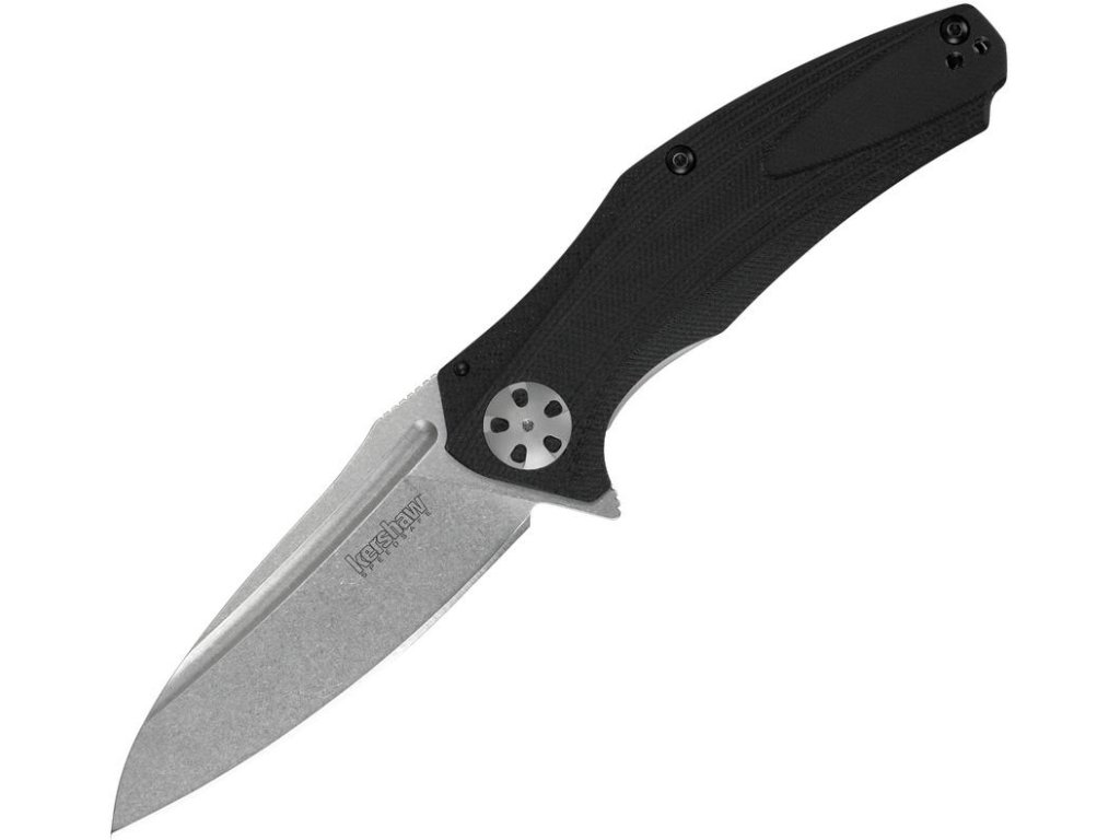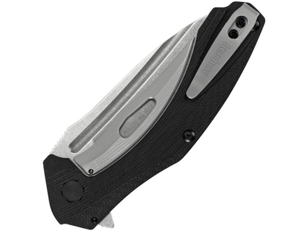 Asistované otevírání. Povrchová úprava kamenem nerezové čepele Wharncliffe. Černá rukojeť G10. Kapesní klip.