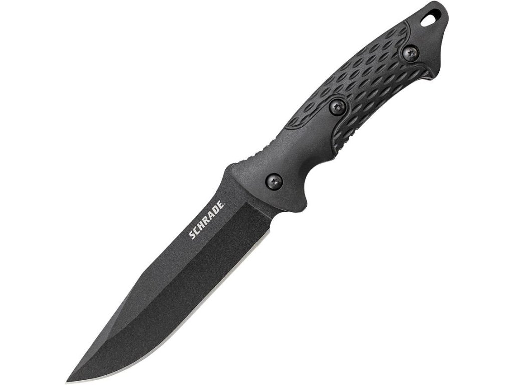 Černá povrchová úprava 8Cr13MoV nerezové čepele. Texturovaná rukojeť z černé gumy a otvorem na šňůrku na krk.