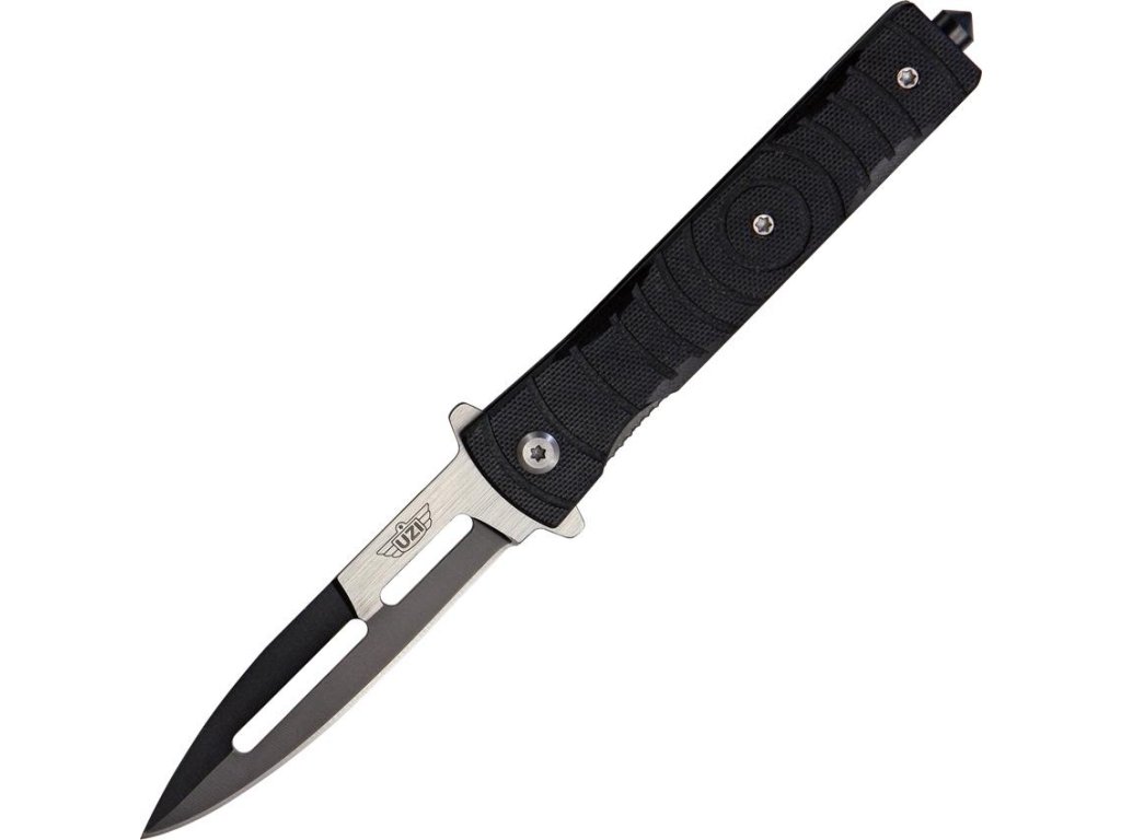 Černá a střtíbrná povrchová úprava, asistované otevírání. Nerezová čepel. Černá nerzová kapesní spona.
