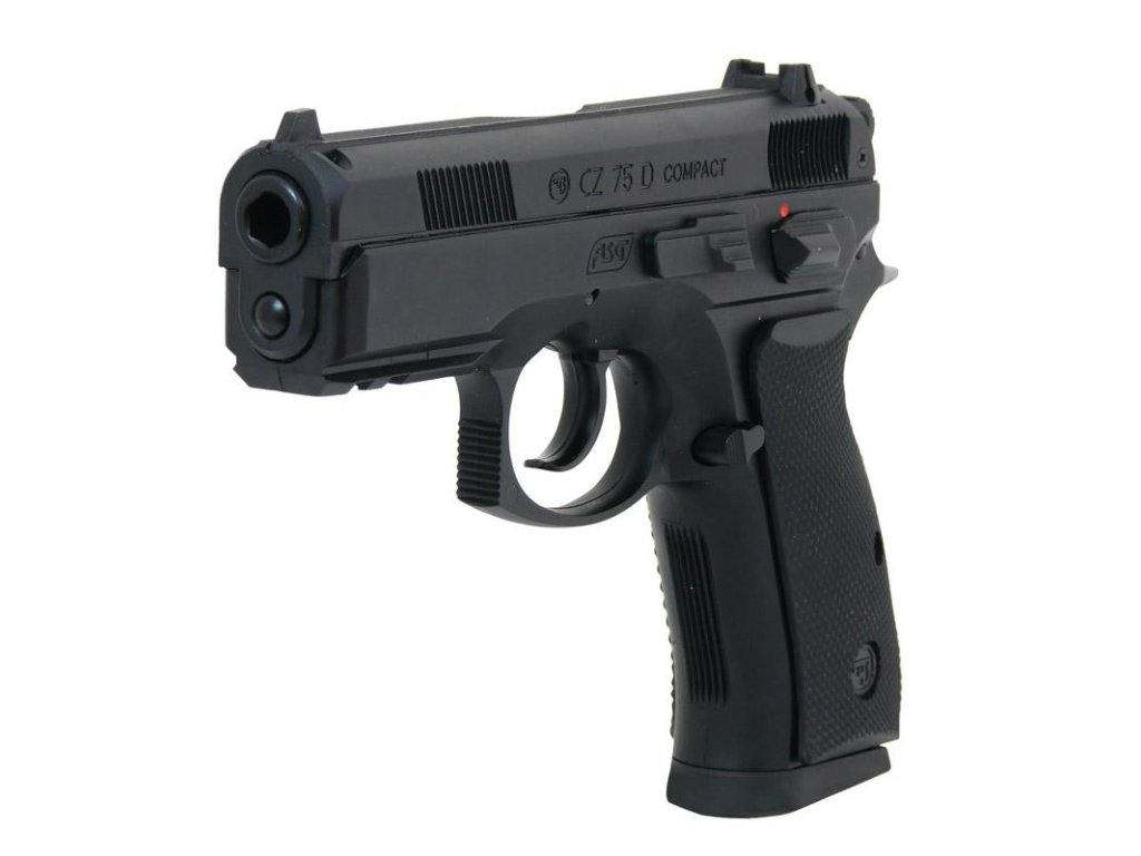 Velice věrná kopie Airsoft realného modelu CZ 75D Cpmpact se všemi detaily, včetně funkční pojistky.