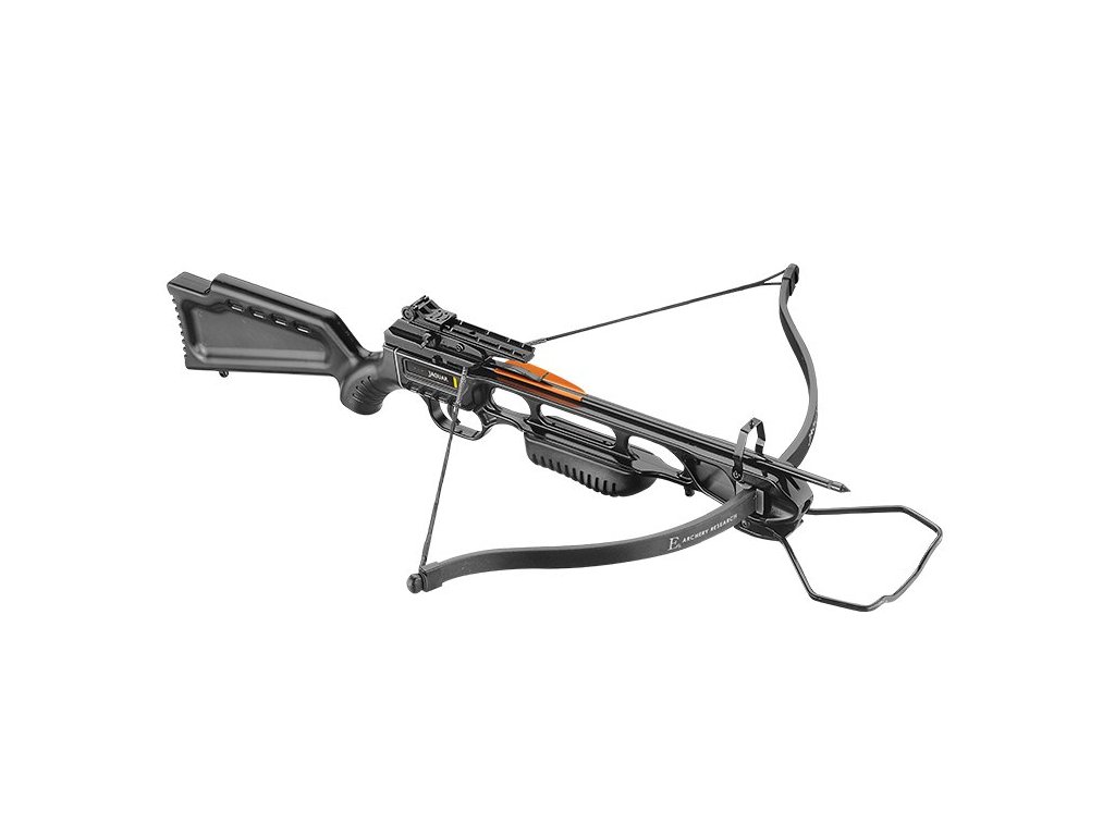 Tento model kuše Jaguar má užší polymerovou pažbu, proto je lehčí - celková hmotnost kuše na 2,6kg. Zbytek konstrukce je kovová.