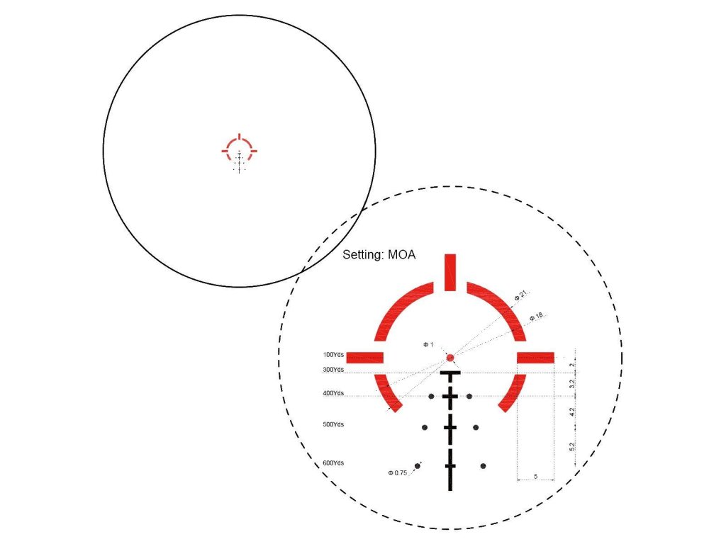 | Výškové a směrové rozpětí:: | >40MOA |