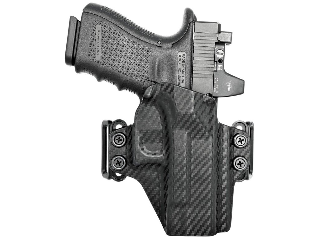 Pouzdro pro Glock 19/19X/23/32/45 OWB KYDEX Belt Loop Holster je dokonalým kydexovým pouzdra. Bylo navrženo od základu s exkluzivním designem Concealment Express a obsahuje nejoblíbenější funkce pouzdra, navíc je kompatibilní s optikou Slide Mounted Optics/MOS/RMR/Red Dot. Pouzdro KYDEX OWB Belt Loop bylo vytvořeno tak, aby umožňovalo pohodlné nošení OWB v minimálním, kompaktním a lehkém provedení. Patentovaná vlastní konstrukce Belt Loop umožnila vytvořit pouzdro co nejkompaktnější, aniž by se obětovala odolnost nebo retence. Každé pouzdro je vyrobeno a tvarováno na patentovaných, přesných hliníkových formách Concealment Expressu. Formy jsou navrženy a frézovány v CAD, takže můžeme zajistit konzistenci, padnutí, kvalitu, odolnost, lehkost, pohodlí a jednotnost vlastností každého vyrobeného pouzdra, bez ohledu na zbraň, pro kterou je určeno.