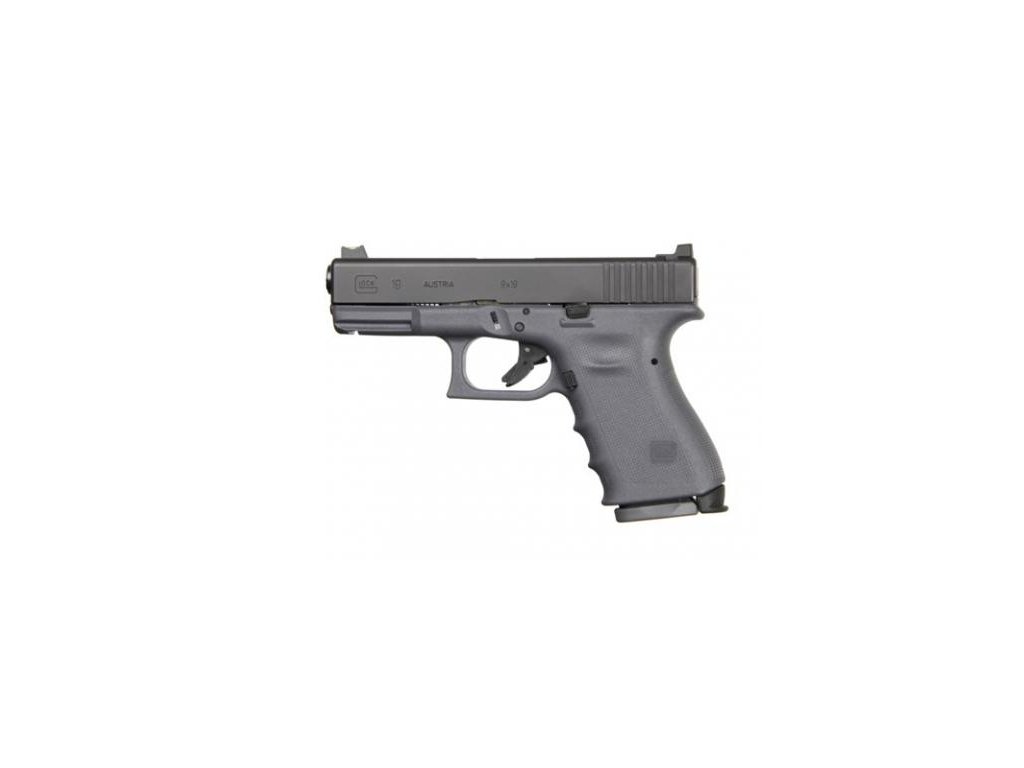 Samonabíjecí pistole Glock 19. Pistole řady Compact jsou vhodné pro běžné nošení a jako služební zbraň. Typ RTF2 má novou texturu gripu, složenou z malých polymerových výstupků a zoubkování na závěru, určené k natahování zbraně.