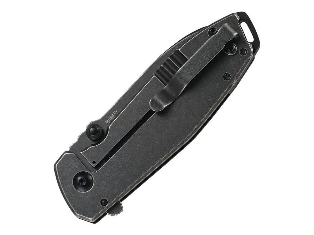 Rukojeť z texturovaného G10 v černém provedení v kombinaci s nerezovou zadní částí s black stonewash úpravou poskytuje pevný, ergonomický a odolný úchop. Nůž je vybaven kapesním klipem a otvorem pro pojistnou šňůru (lanyard hole).