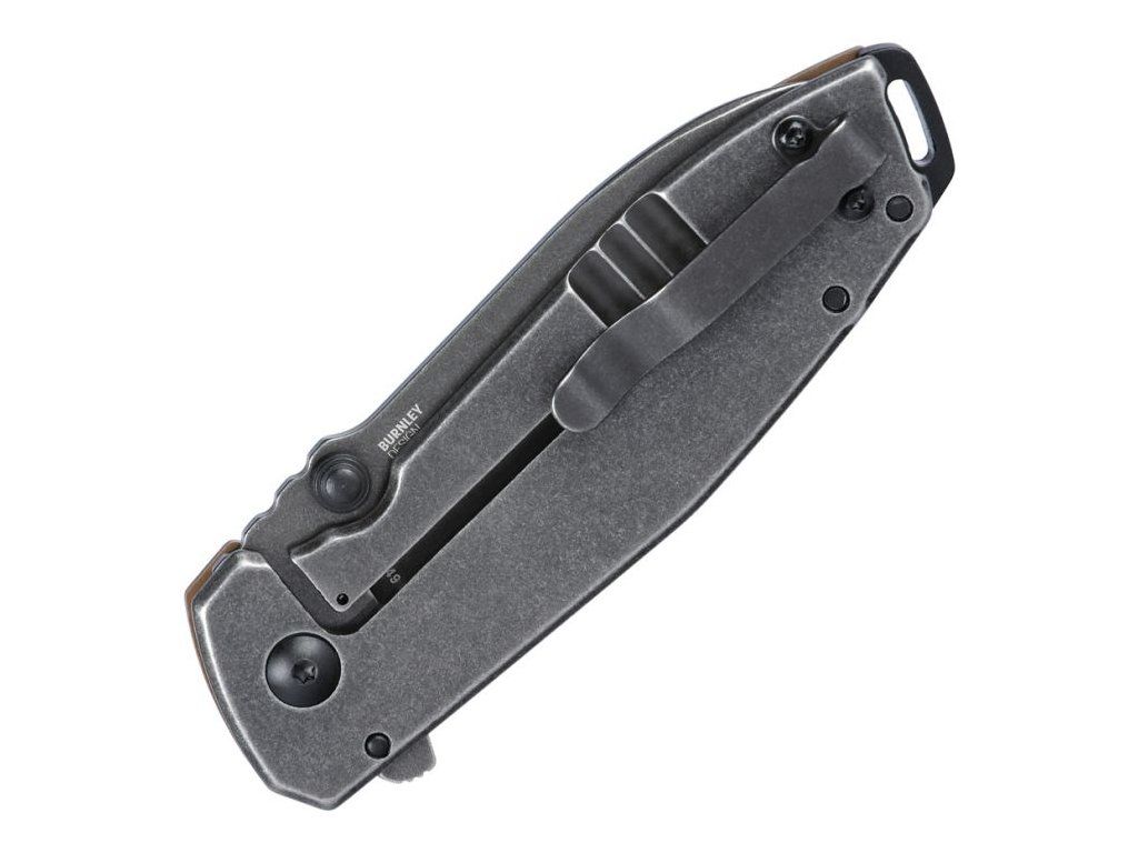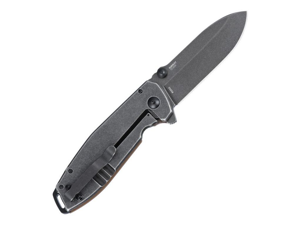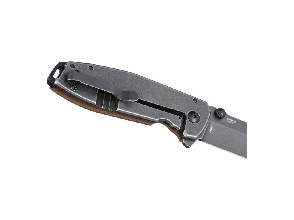 Rukojeť z texturovaného G10 v earth brown provedení v kombinaci s nerezovou zadní částí s black stonewash úpravou nabízí pevný, ergonomický a odolný úchop. Nůž je vybaven kapesním klipem a otvorem pro pojistnou šňůru (lanyard hole).