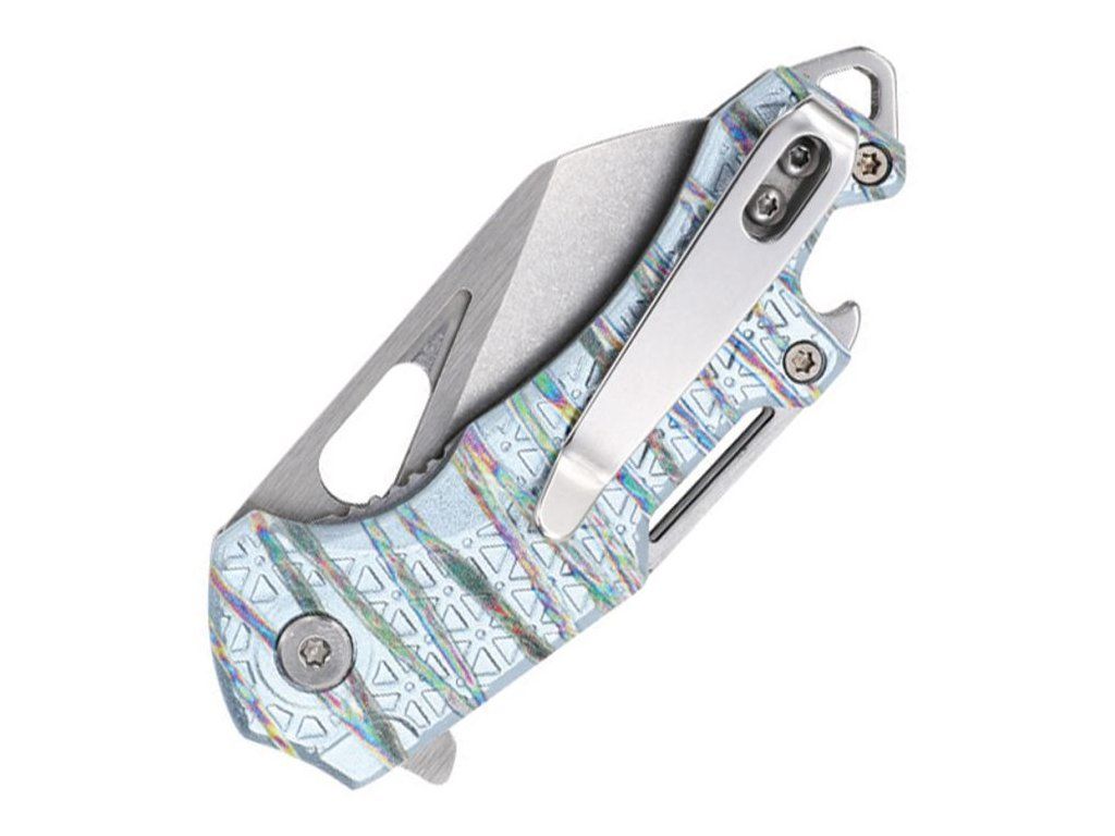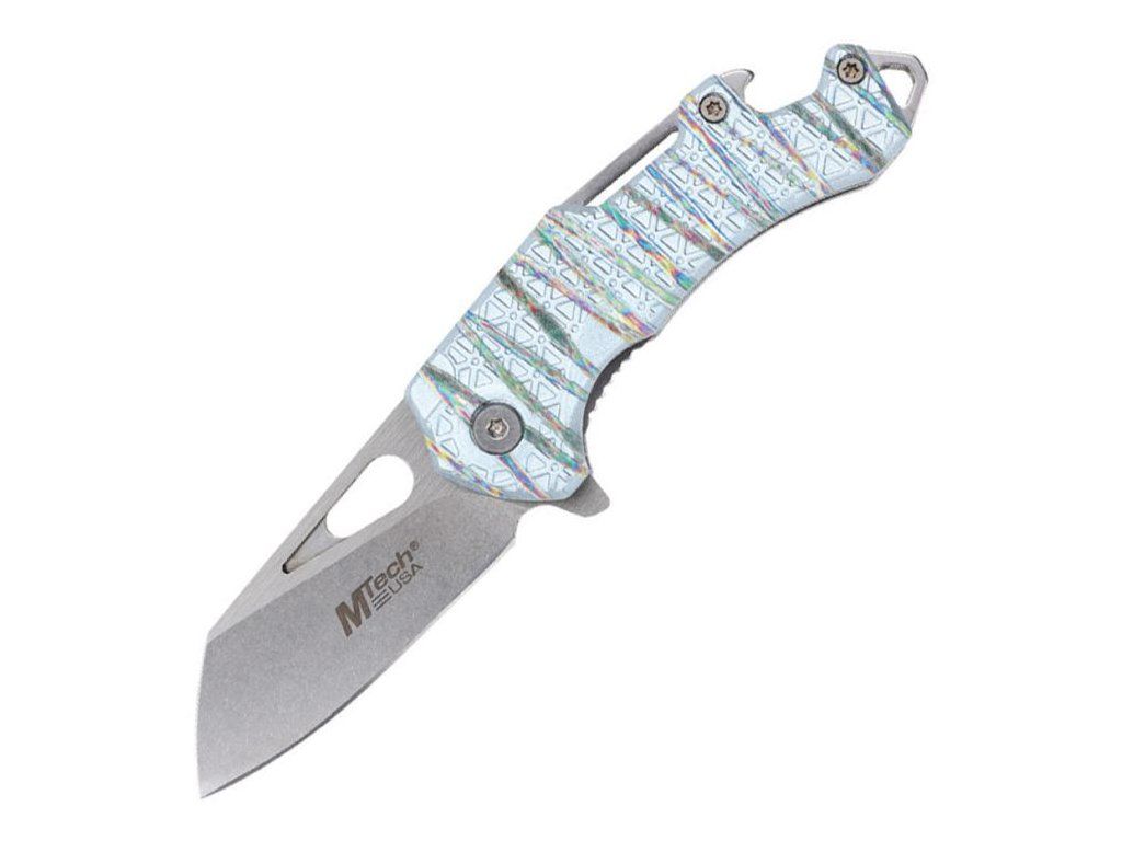 Rukojeť z anodizovaného hliníku v kombinaci spectrum a stříbrného provedení dodává noži výrazný a moderní vzhled a zároveň poskytuje pevný a jistý úchop. Nůž je vybaven kapesním klipem pro pohodlné nošení a díky své konstrukci je vhodný i jako stylový doplněk. Tento EDC zavírací nůž MTech je ideální volbou pro ty, kteří hledají funkční nůž s originálním designem pro každodenní použit