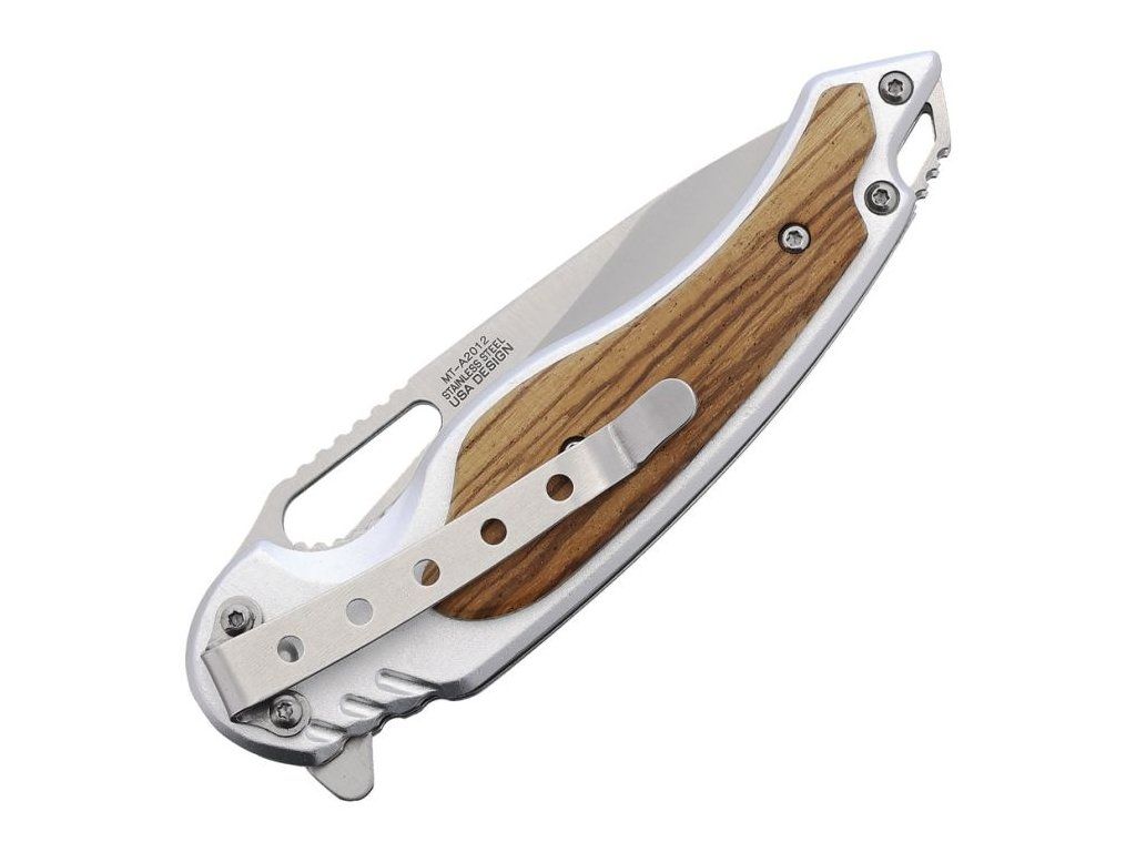 Tento zavírací nůž MTech s asistovaným otevíráním (assisted opening) je navržen jako stylový a zároveň praktický nástroj pro každodenní nošení (EDC). Kombinace nerezové oceli a přírodního dřeva vytváří atraktivní design vhodný pro běžné použití i jako elegantní doplněk.