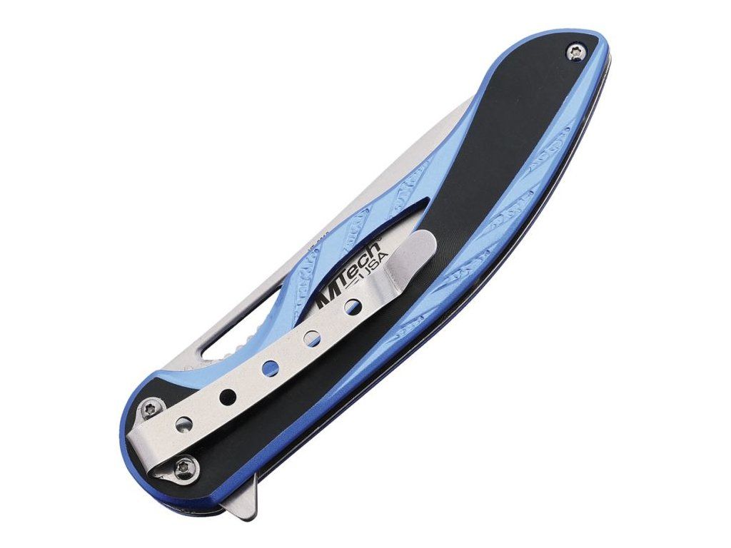 Rukojeť z anodizovaného hliníku v modro-černém provedení je lehká, pevná a poskytuje jistý úchop i při delším používání. Nůž je vybaven kapesním klipem, který umožňuje pohodlné nošení. Tento EDC zavírací nůž MTech je ideální volbou pro všechny, kteří hledají funkční, jednoduchý a designově zajímavý nůž pro každodenní použití.