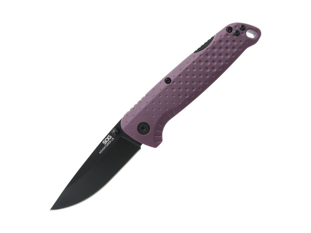 Kapesní nůž SOG Adventurer Lockback fialový EDC zavírací nůž 5Cr15MoV, lockback