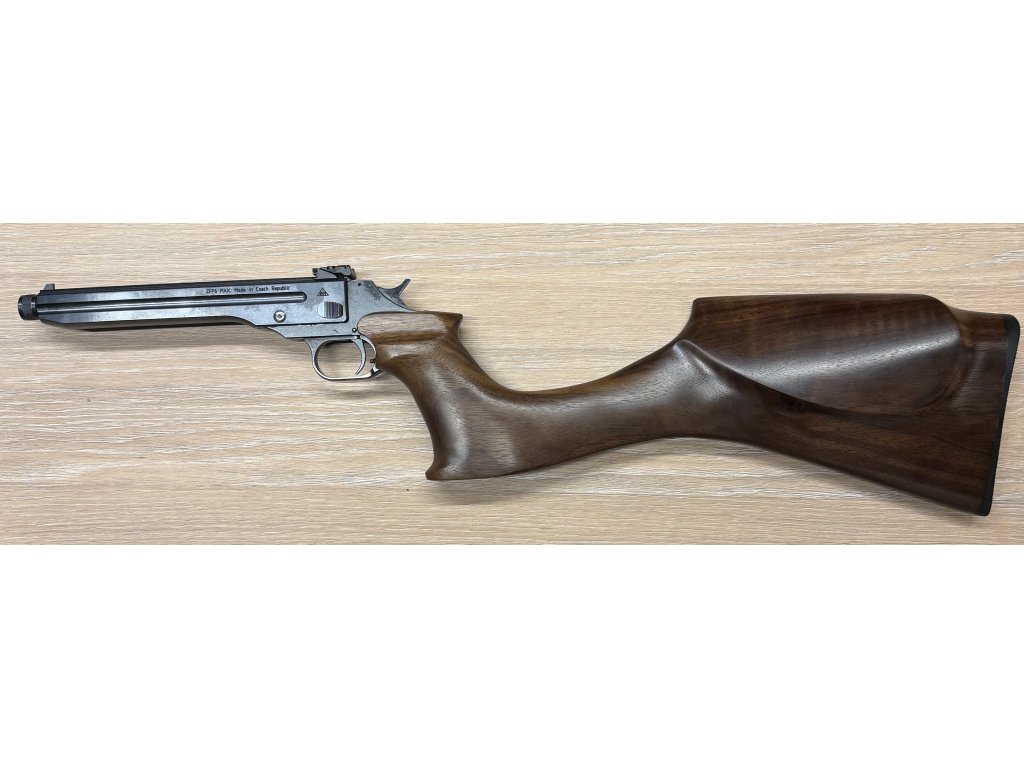 Jednoranná flobertka české výroby, velice pěkné a kvalitní zpracování s závitem na hlavni 1/2 20" UNF s lícní pažbou.