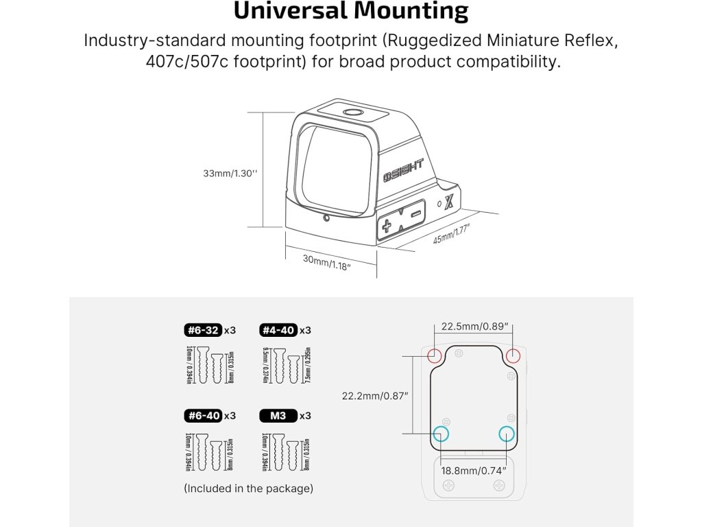 Standardní montážní základna 407c/507c (RMR pattern) umožňuje snadné nasazení na širokou škálu platforem.
