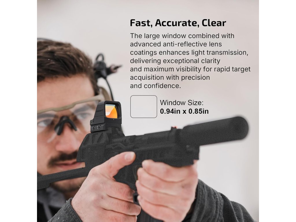 Velké zorné pole s vícenásobně potaženou čočkou zajišťuje výjimečnou světelnost a ostrost – pro bleskovou akvizici cíle a jistotu v každém výstřelu.