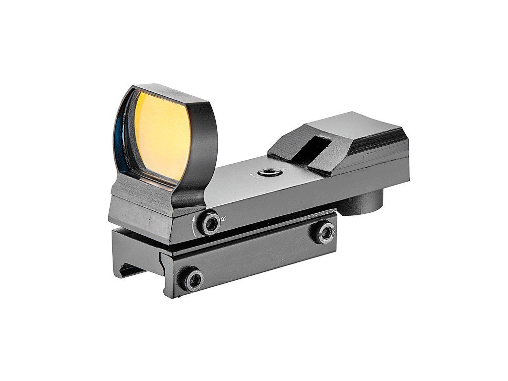 Kolimátor Ek-Archery - kvalitní optický zaměřovač z pevného duralu. Kovové tělo a červený film na skle optiky zaměřovače - opravdu zdařilé provedení za bezkonkurenční cenu od firmy Ek-Archery. Kolimátor má červený bod ve dvou intenzitách. Stranové a výškové nastavení světelného bodu a montáž 22 mm Weaver - lze jej osadit na Kuše, Vzduchové zbraně i Airsofty s montážními lištami weaver.