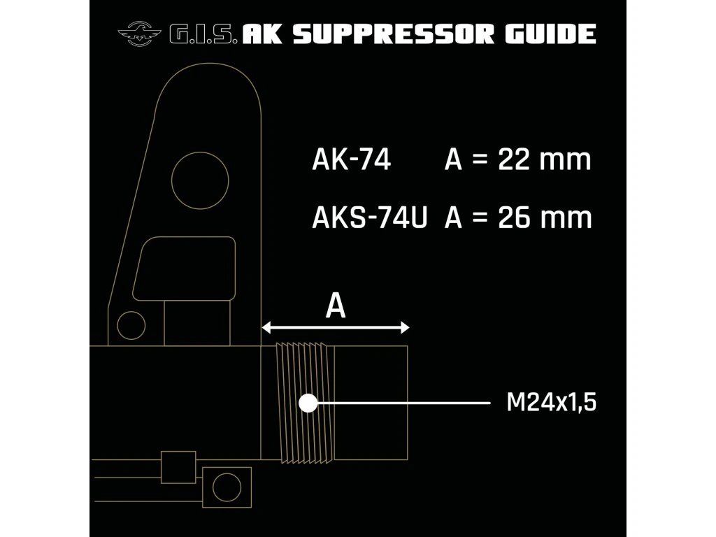 Toto úsťové zařízení je speciálně navrženo pro potlačení světelných a akustických efektů výstřelu u zbraní rodiny AK v ráži 7,62x39, které mají závit na hlavni M24x1,5.