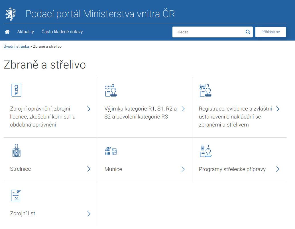 - prostřednictvím Portálu občana / Podacího portálu MV ČR (https://dfmv-p.gov.cz/zbrane-a-strelivo/opravneni/)