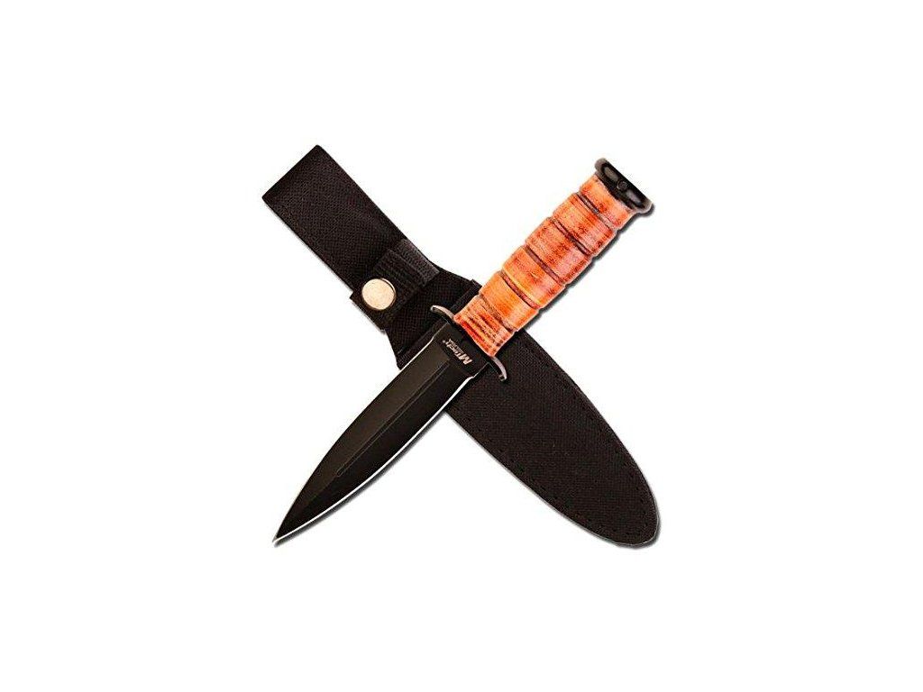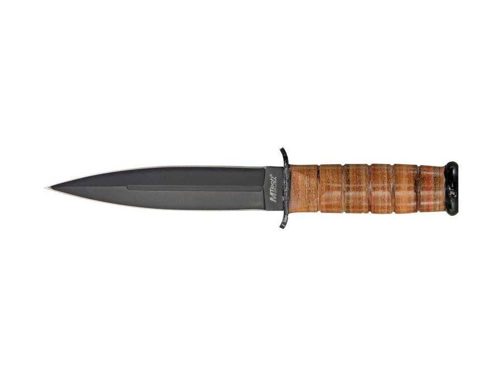 Taktický nůž s pevnou čepelí MT526BN s hnědou koženou rukojetí amerického výrobce MTech.