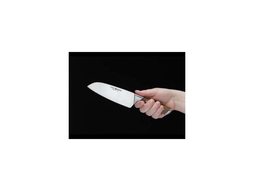 Nůž je vyroben z nerezavějící oceli X50CrMoV15. Rukojeť je vyrobena z kvalitního javorového dřeva. Díky ergonomickému designu a optimálnímu vyvážení rukojeti, nůž padne dokonale do ruky. Materiál čepele má velmi dobré řezné a brusné vlastnosti. Santoku je nůž, který se v Evropě stává stále oblíbenějším. Je to původně japonský tvar čepele. Je vhodný na maso, ryby i zeleninu. Díky širokému tvaru se nůž Santoku snadno ovládá. Baleno v papírové dárkové krabičce