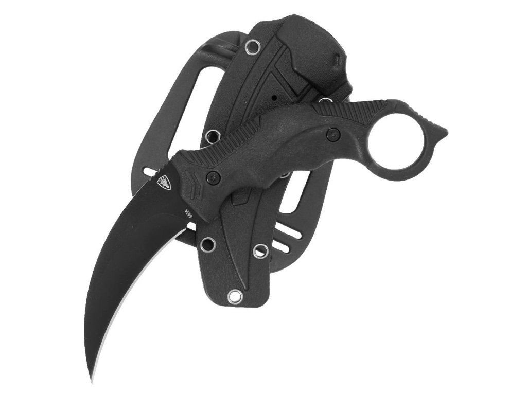 Zahnutá čepel o délce 90 mm, materiál čepele z nerezové oceli 440A, profilovaná rukojeť, bezpečnostní kroužek. Stylový karambitový nůž s pevnou čepelí Umarex Elite Force EF 717. Své užití si najde jako ochranný prostředek, tak jako pomocník ve skladu či na zahradě. Nůž je vyroben z jednoho kusu nerezové oceli 440A (full-tang konstrukce) a povrchově upraven černým oxidem, zdůrazňujícím taktický styl nože. Zahnutá drápovitá čepel je dlouhá 90 mm. Na hřbetu čepele jsou provedeny příčné frézy, které umožňují stabilní opření prstů a lepší ovládání nože při přesném řezání. Elite Force EF717 má profilovanou rukojeť a vzorované laminátové podložky G10 připevněné šrouby. Na konci rukojeti je kroužek pro ukazováček, charakteristický pro nože karambit, umožňující změnu úchopu. K nošení nože slouží lehké polymerové pouzdro s pásovou ploutví.
