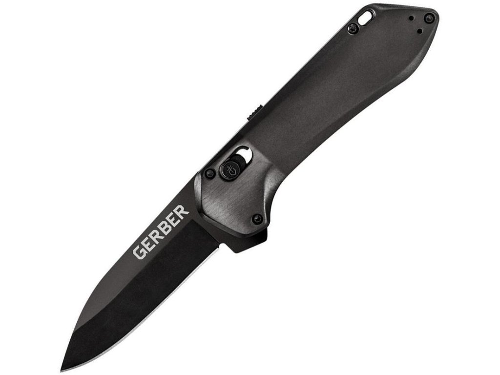 Asistované otevírání. 4,13" (10,49 cm) zavřeno. 2,88" (7,32 cm) černá povrchová úprava 7Cr17MoV nerezová čepel. Černá hliníková rukojeť. Rozšířený tang. Otvor pro šňůrku. Kapesní klip.