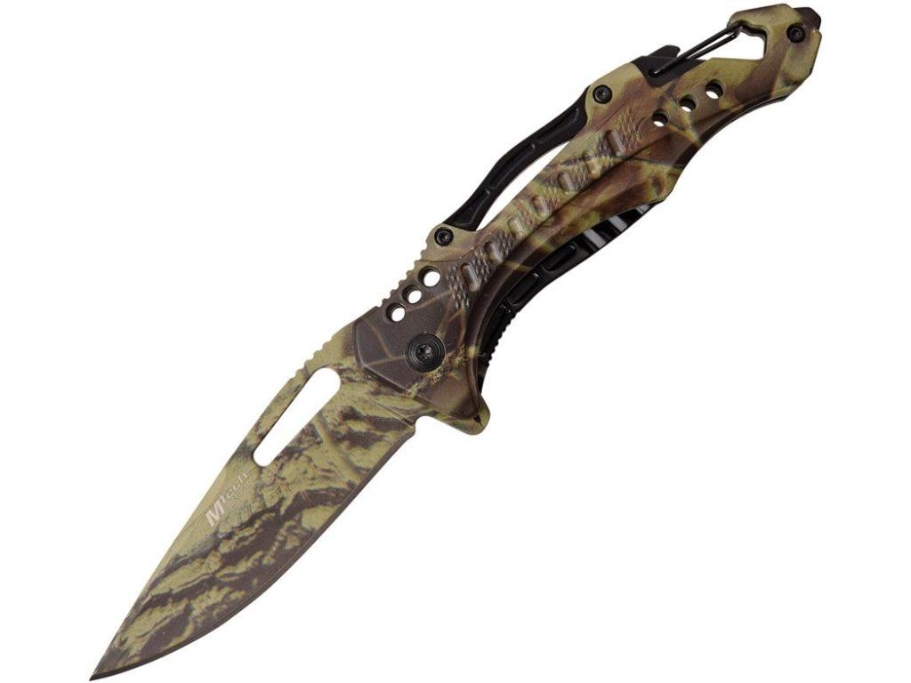 Asistované otevírání. 4,75 "(12,07 cm) uzavřená. 3,5" (8,89 cm) nerezová čepel s kamuflážovou úpravou. Camo hliníková rukojeť.