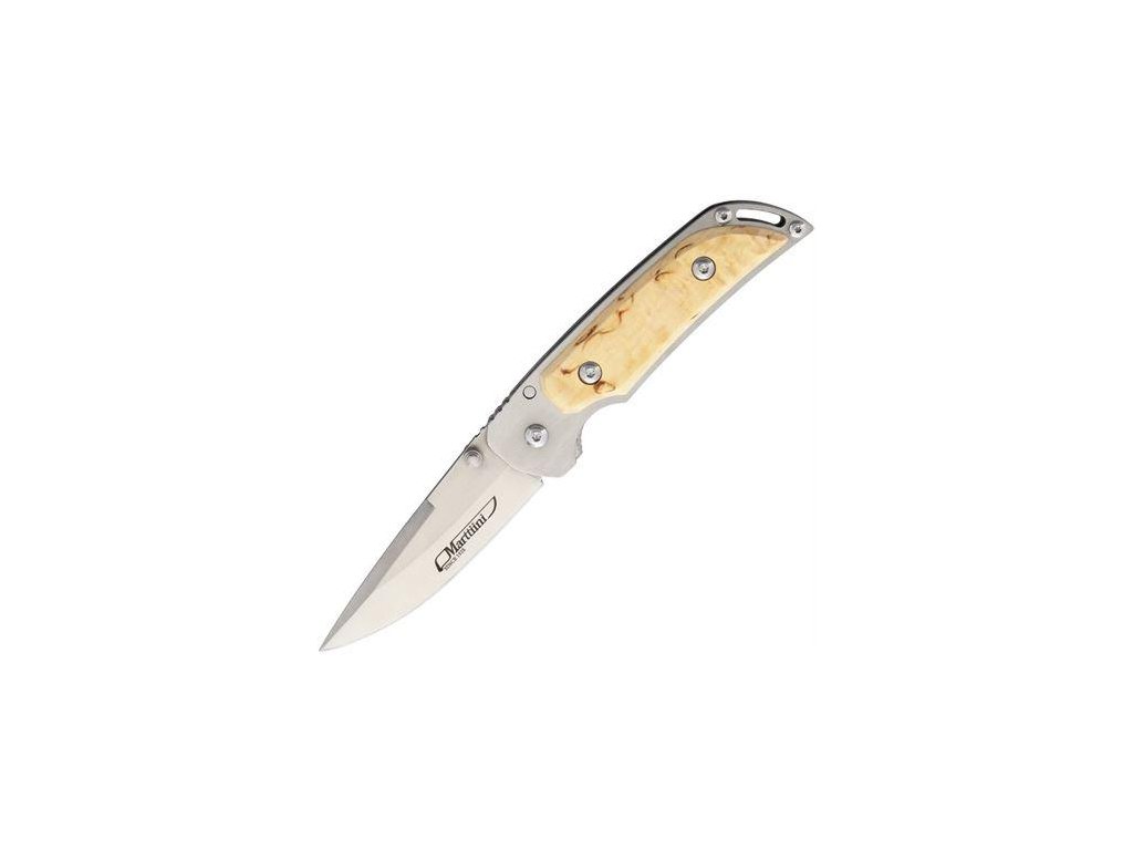 Marttiini 915111 - MFK-2CB skládací nůž s kudrnatou březovou rukojetí. 4.25" zavřeno. 3,125" saténová povrchová nerezová čepel. 2Cr13 nerezová rukojeť. Otvor pro šňůrku. Kapesní klip. Palcový cvoček.