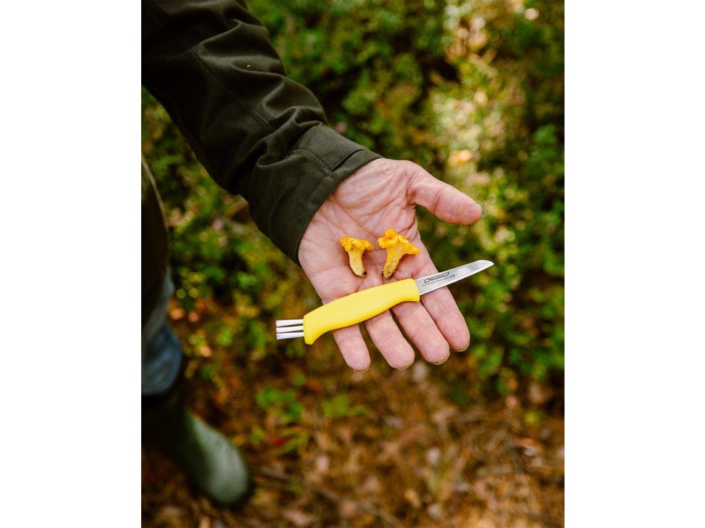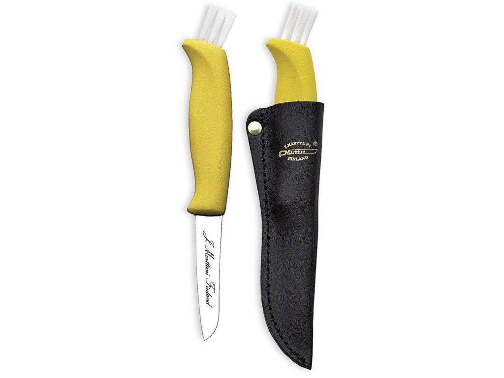 Nůž na houby Marttiini je na konci rukojeti vybaven praktickým čisticím kartáčkem, který umožňuje krásně očistit nalezené houby. Čepel má přesně ten správný tvar a délku pro krájení jemných hub. Nůž je navržen tak, aby byl maximálně praktický, a je dodáván s koženým pouzdrem, které lze dát do kapsy nebo zavěsit na opasek.