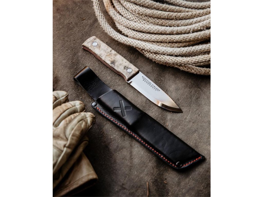 Tundra Bushcraft je všestranný nůž pro náročného uživatele. Tento bushcraft nůž je určen pro zátěžové použití. Nůž je vyroben z vysoce pevné nerezové oceli, celoplošná struktura a robustní čepel poskytují vynikající odolnost. Čepel a celý hrot mají tloušťku 3,5 mm. Na tomto noži jdou tradiční materiály ruku v ruce s moderním designem. Rukojeť je vyrobena z finské kadeřavé břízy. Červené detaily na rukojeti a kožené pouzdro utěsňují dynamický vzhled. Nůž Tundra je k dispozici se dvěma možnostmi rukojeti: šedě voskovaná bříza kadeřavá (Tundra GR) a voskovaná bříza kadeřavá v přírodní barvě (Tundra CB). Povrch voskovaného dřeva a design rukojeti zajišťují pevné uchopení. Pevná kožená pochva je vyztužena nýty. V případě potřeby lze díly rukojeti nože znovu utáhnout (hlavu šroubu - Torx T10).