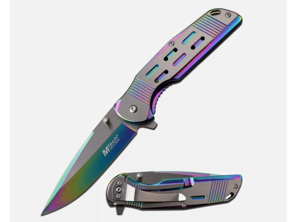 Nůž MTech 8" Overal Zámek rámu Pružina Asistovaná duhová/saténová čepel