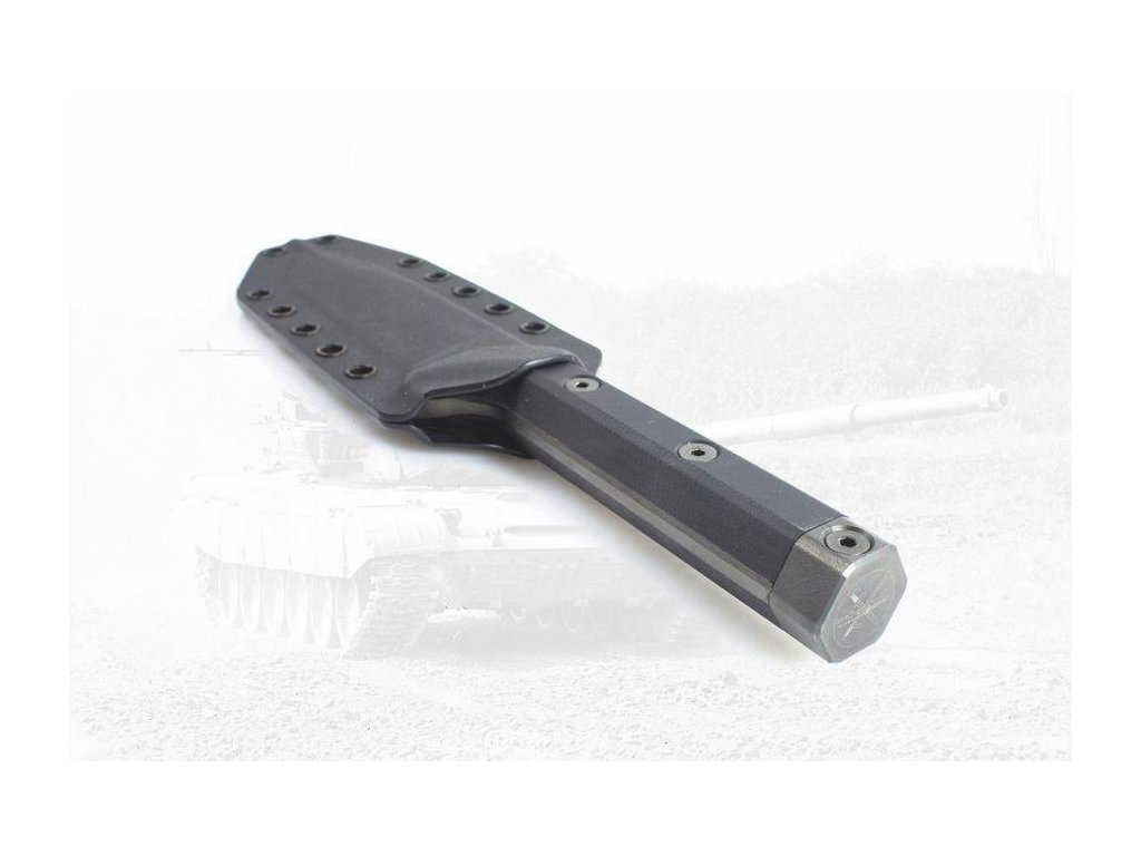 Tvar u špičky nože symbolizuje přední část tanku při pohledu z boku.