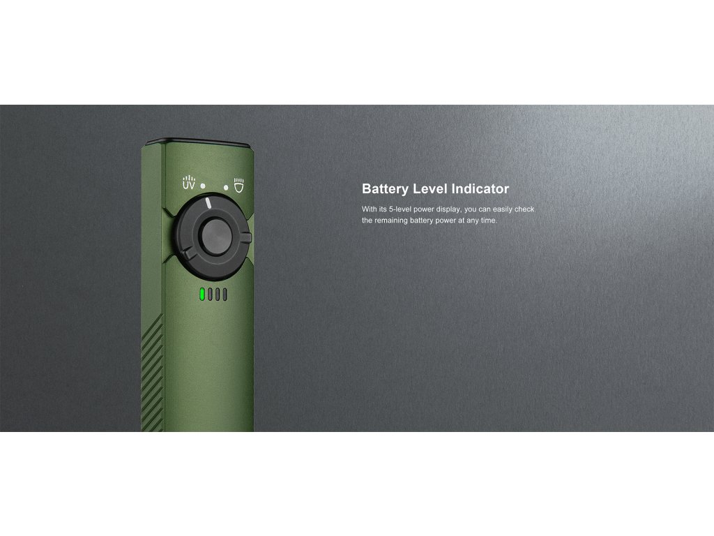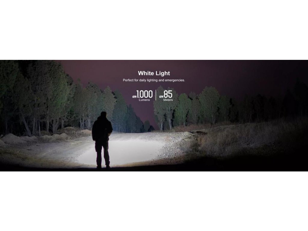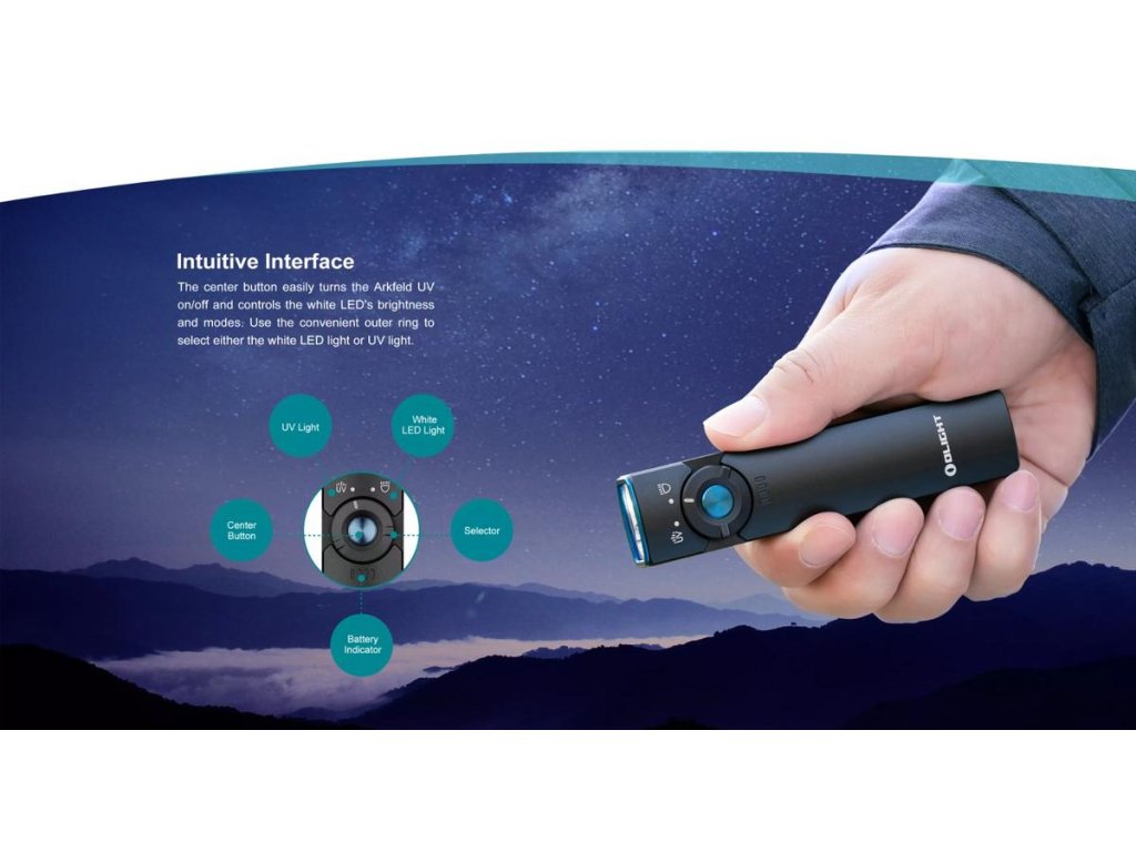 Olight Arkfeld přináší revoluční spojení bílého LED osvětlení s UV světlem do jednoho kompaktního svítidla. S pěti úrovněmi jasu a maximálním výkonem 1000 lm je tento světlomet impozantním prvkem ve svém oboru. Vestavěné UV světlo o výkonu 580 mW umožňuje vidět věci, které jsou běžným okem neviditelné, což je skvělé pro detekci různých stop nebo nedokonalostí.