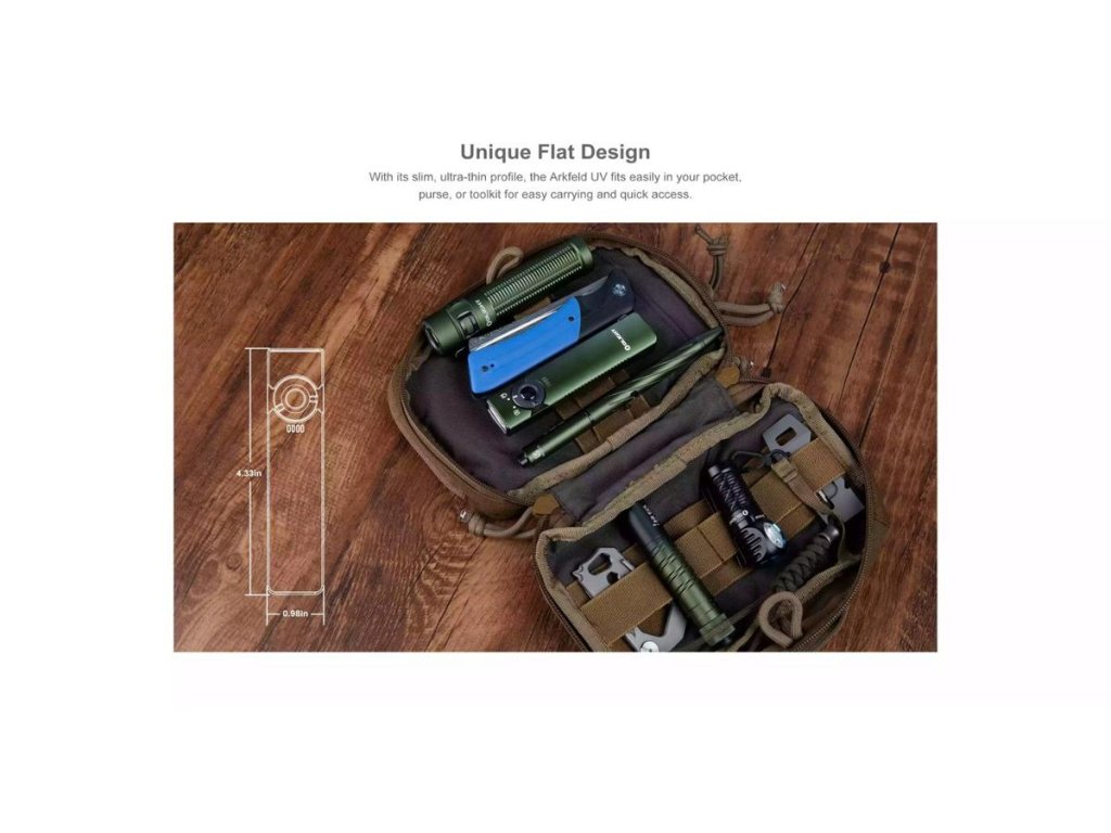 Olight Arkfeld UV CW je spolehlivým a elegantním společníkem pro každodenní použití. S její všestranností a výkonem se stanete připravenými na různé situace, kdy potřebujete světlo a detekci UV světla.
