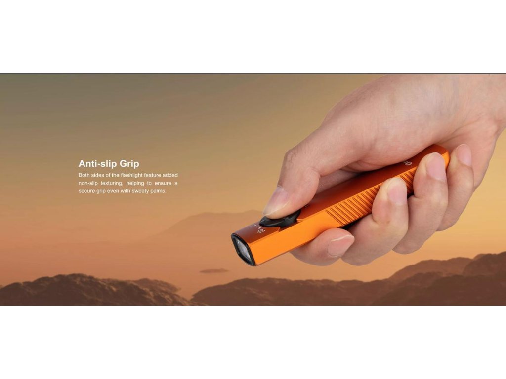 Tělo vyrobené ze slitiny hliníku zaručuje odolnost a dlouhou životnost svítilny. Designérům se podařilo vytvořit tenké, protiskluzové a ploché tělo, které nabízí pohodlné držení a nošení v kapse. S obousměrnou sponou a magnetem můžete svítilnu snadno připevnit na různé předměty nebo si ji zavěsit na oděv či batoh.