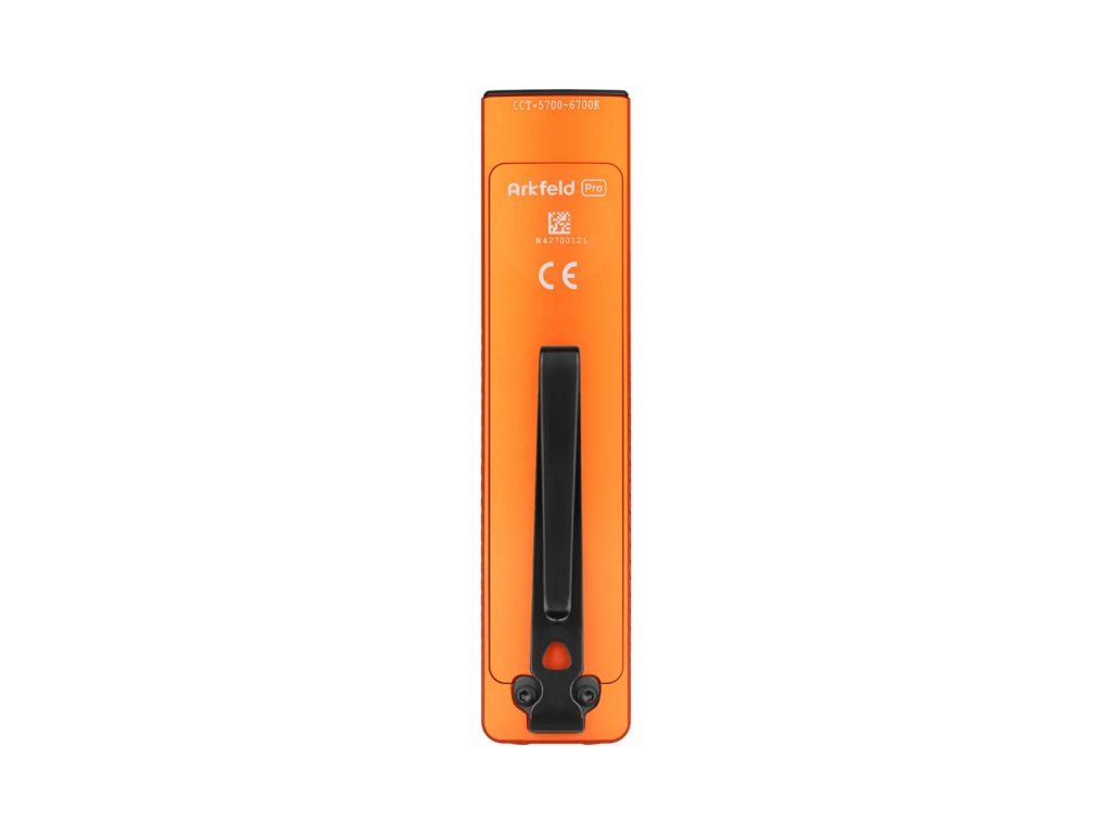 Svítilnu Arkfeld Pro lze pohodlně dobíjet pomocí interního lithiového akumulátoru s kapacitou 1500 mAh pomocí přiloženého magnetického nabíjecího kabelu. Centrální pětistupňový indikátor baterie vám vždy ukáže, kdy je čas na dobíjení. S dlouhou výdrží baterie v různých režimech svícení je Arkfeld Pro připraven k použití kdykoli a kdekoli.