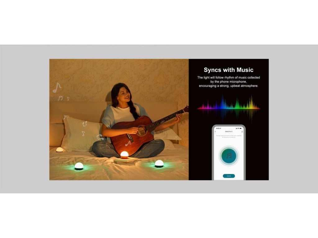 | Ovládání pomocí aplikace: | ano, režim, jas, barva, kontrola úrovně nabití, skupinové ovládání, hudba, rytmus, odpočet a další... |