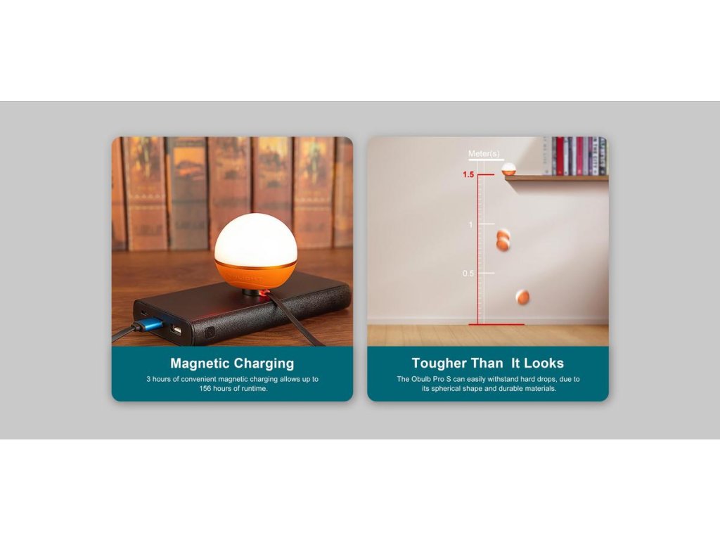 Obulb Pro S vyzařuje světlo až do vzdálenosti 9 metrů v úhlu 360° s jasem až 240 lumenů. Dlouhou dobu provozu zajišťuje vestavěná lithiová baterie s kapacitou 1650 mAh. Při nízkém nastavení bílého světla si můžete užívat až 156 hodin svícení bez přestávky v nabíjení!