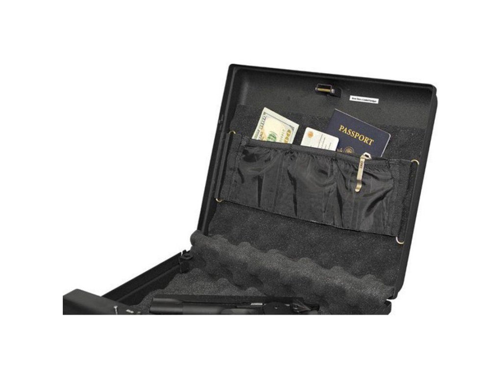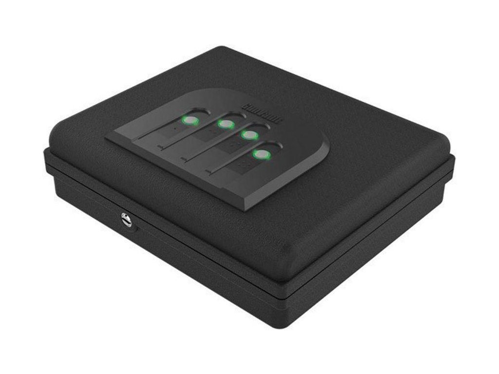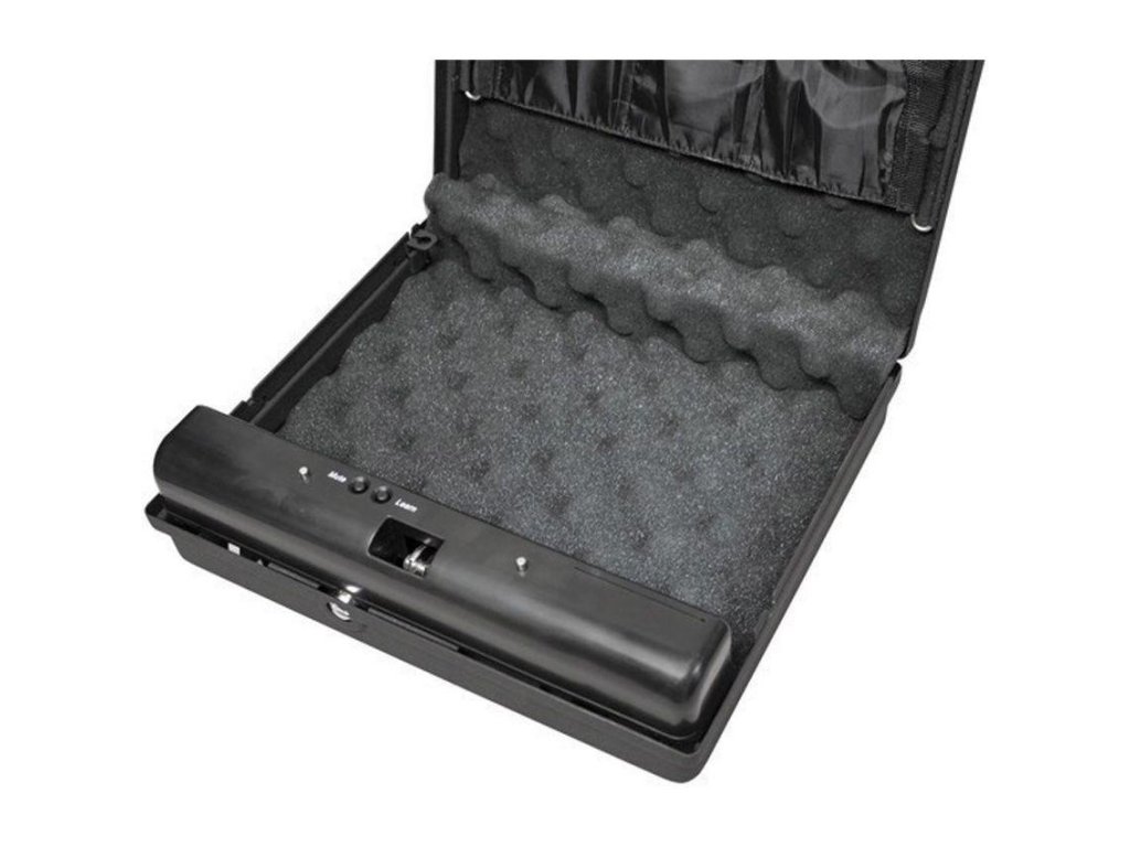 Rozměry: 31,10 x 27,10 x 8,95cm. Hmotnost: 3,9kg. Vnitřní rozměry: 30,22 x 21,00 x 7,9cm. Podsvícená klávesnice No-Eyes. Dveře se otevřou okamžitě po zadání správného kódu. Automaticky vysouvací zásuvka. Pěnový vnitřek drží zbraň na místě a chrání povrch. Celé ocelové pouzdro. Při pokusech o neoprávněný přístup hlásí funkce detekce manipulace. Obsahuje záložní klíče. Bezpečnostní kabel umožňuje uzamčení a přivázání k pevnému předmětu. Uložení látkového popruhu ve víku.