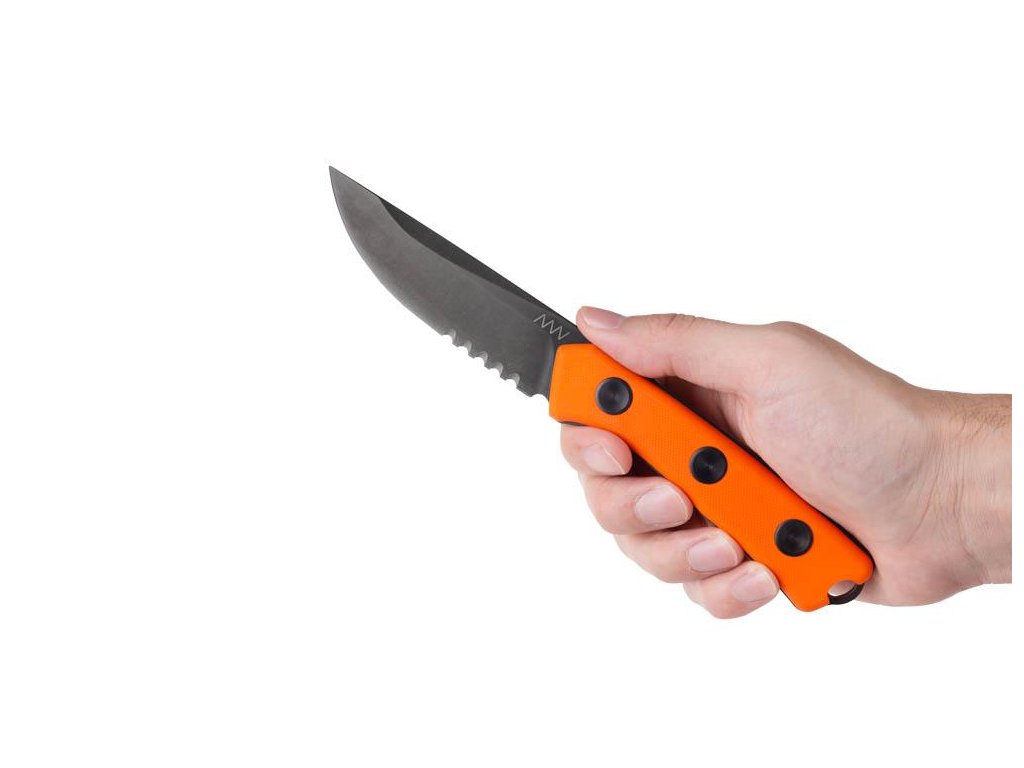 Střenky jsme vyrobili z vysoce odolného materiálu G10 jehož povrch jsme upravili naší metodou ANV SAND&GLASS BLASTING, díky které je povrch střenky odolný proti vyklouznutí z ruky například ve vodě, blátě nebo pokud je potřísněný krví.